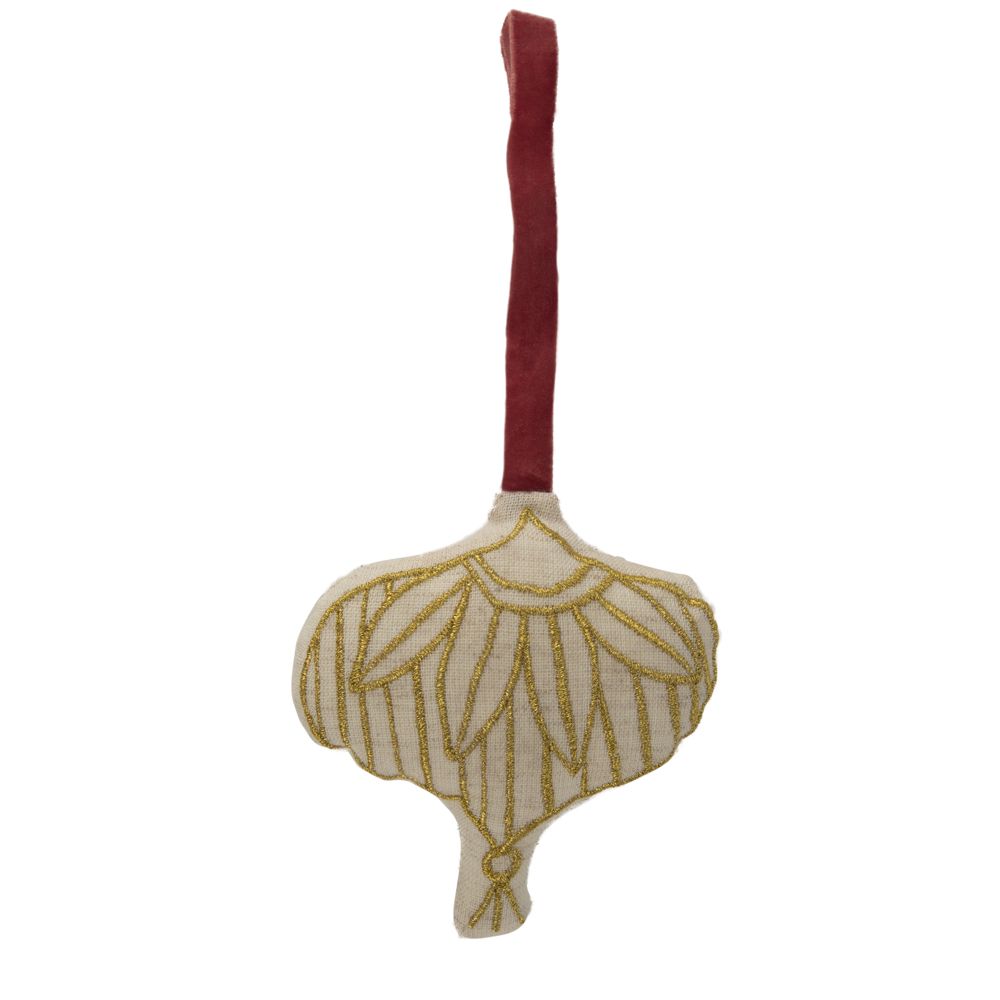 Adorno navideño de tela con diseño bordado. Compleméntalo con los otros adornos navideños de la colección. Tiene un tamaño de 10x2x10 cm.