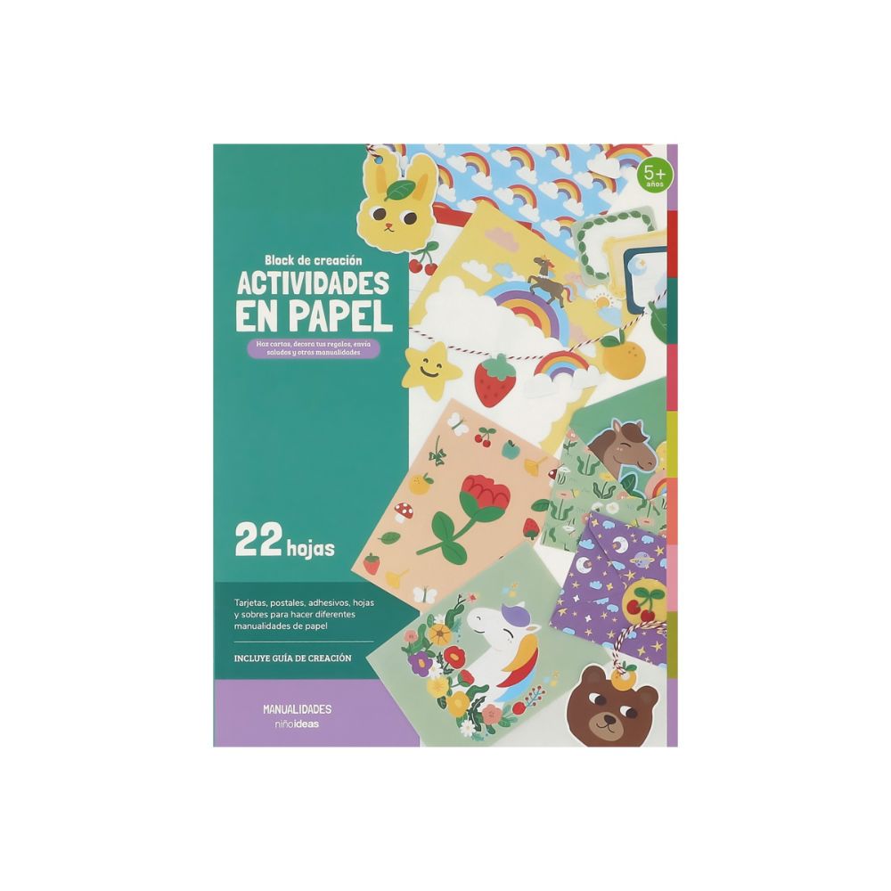Block con tarjetas, postales, sobres, hojas, stickers para hacer manualidades de papel. Podras hacer cartas, decorar tus regalos, enviar saludos y crear otras manualidades. Incluye guía de creación, Ideal para mayores de 5 años.