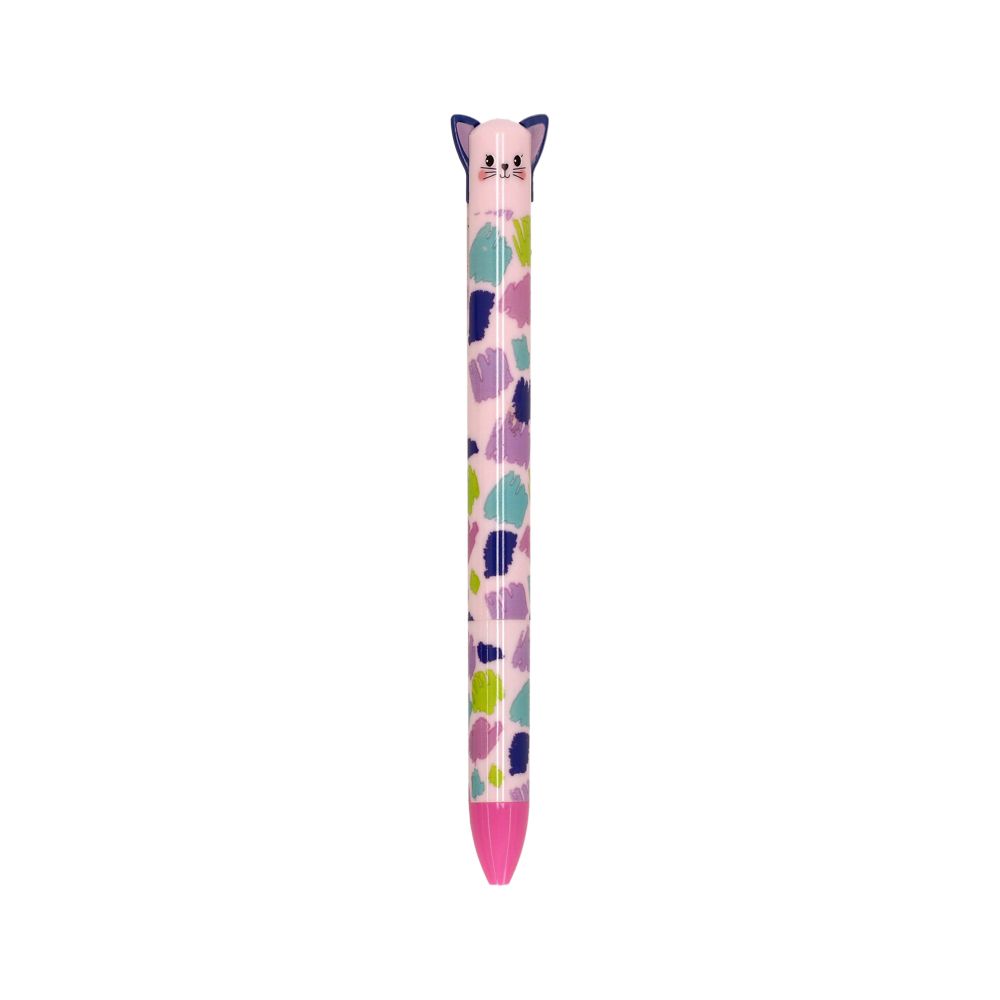 Bolígrafo de punta redonda con dos colores de tinta (roja y azul) que puedes cambiar moviendo las orejas del personaje en la punta del lápiz. Ideal para mayores de 3 años.