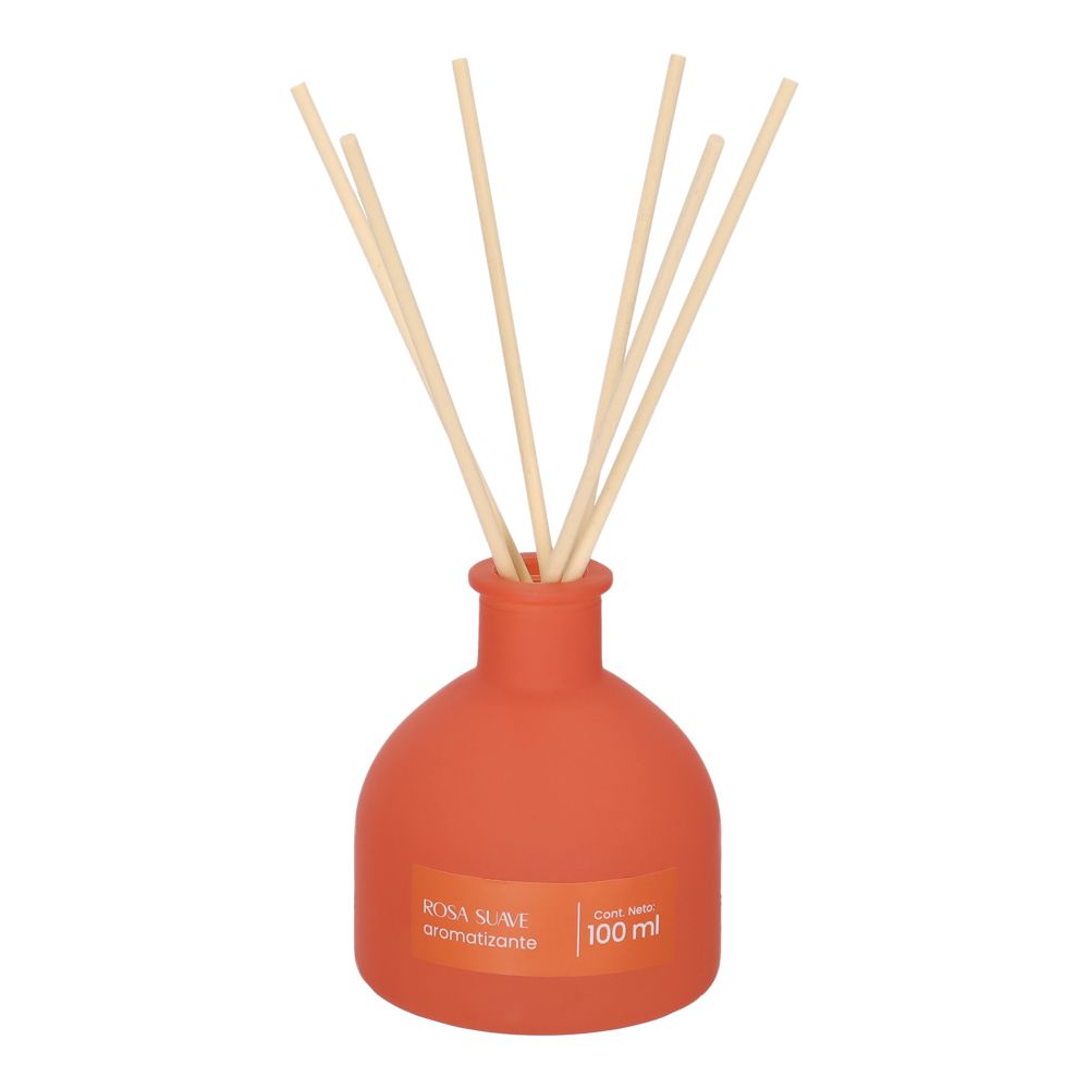 Set de varitas aromáticas con olor a rosa suave y con botella de color. Las varitas de algodón absorben mejor el aceite, aromatizando con mayor facilidad los ambientes. Tiene una cantidad de 100 ml.