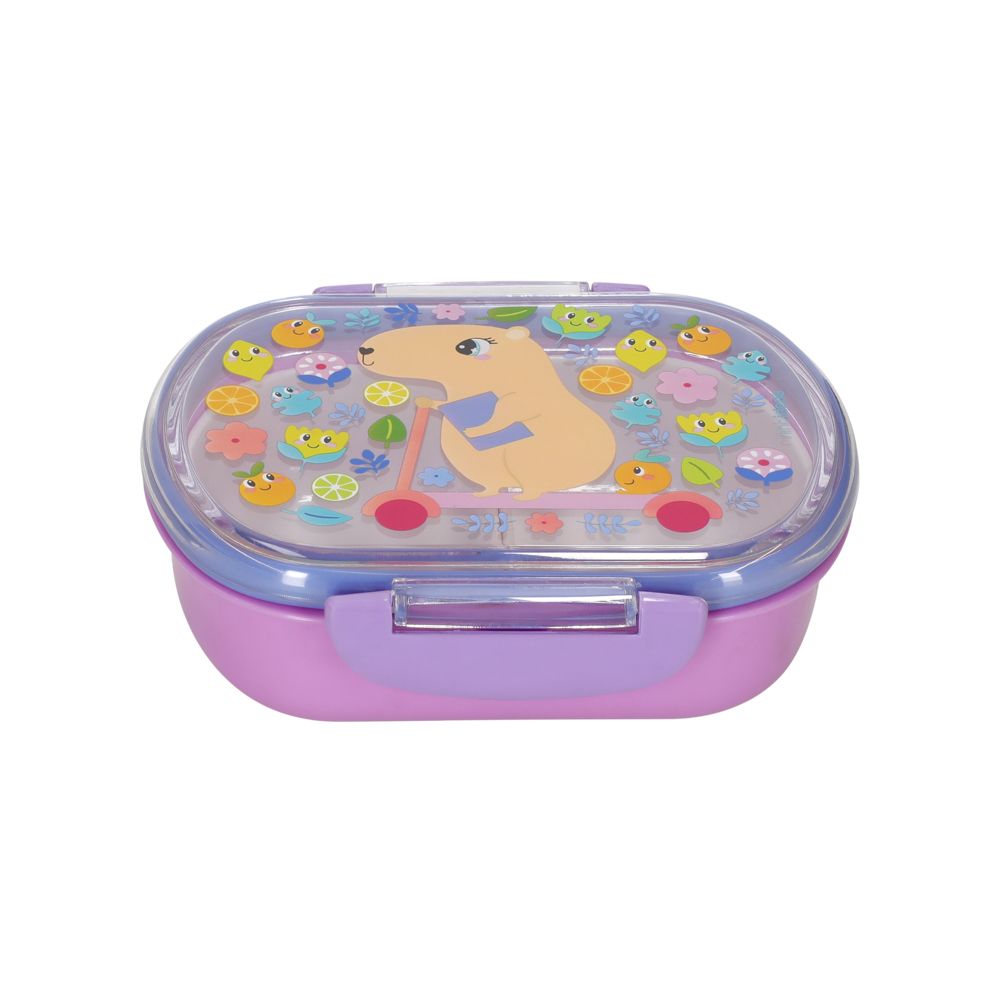 Cajita para llevar la lunch al colegio. Tiene un tamaño de 14.7x13x4.5 cm. Libre de BPA.