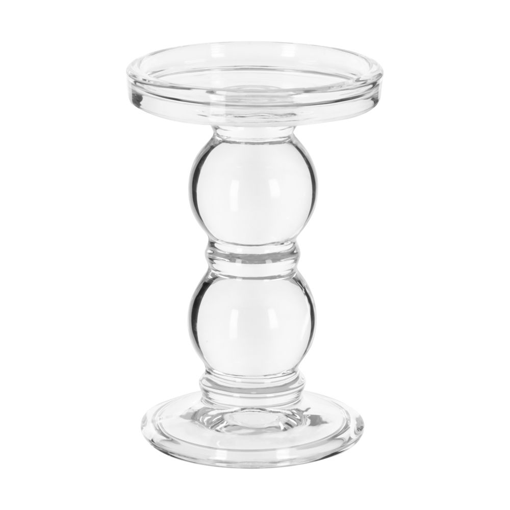 Candelabro perfil de vidrio. Tiene un diámetro de 10x15 cm.