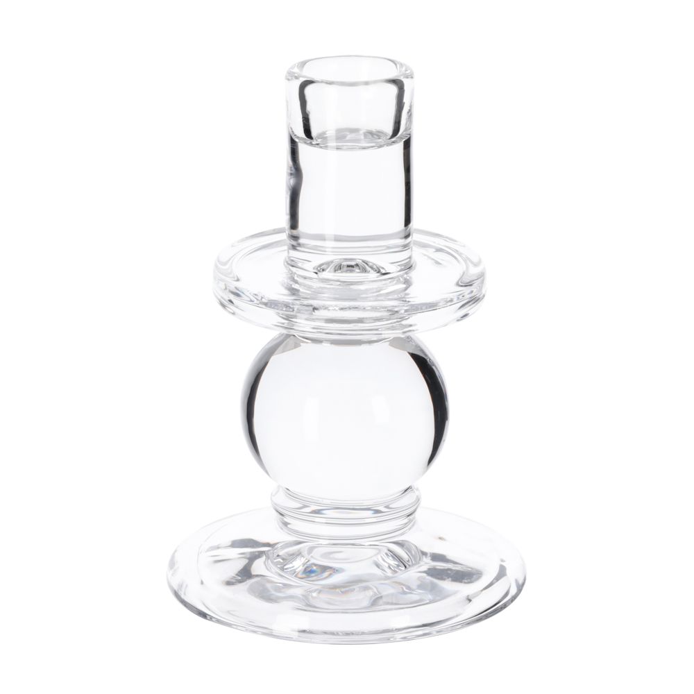 Candelabro perfil de vidrio para vela dinner. Tiene un diámetro de 9x13.3 cm.