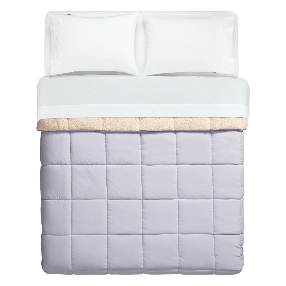 Cobertor con cubierta de poliéster de 230 hilos, relleno de poliéster reciclado y con reverso tipo borreguito. Disponible en tres medidas. No incluye funda de almohadón. Tiene un tamaño de 270x250 cm. Cuenta con certificación Oeko-Tex.