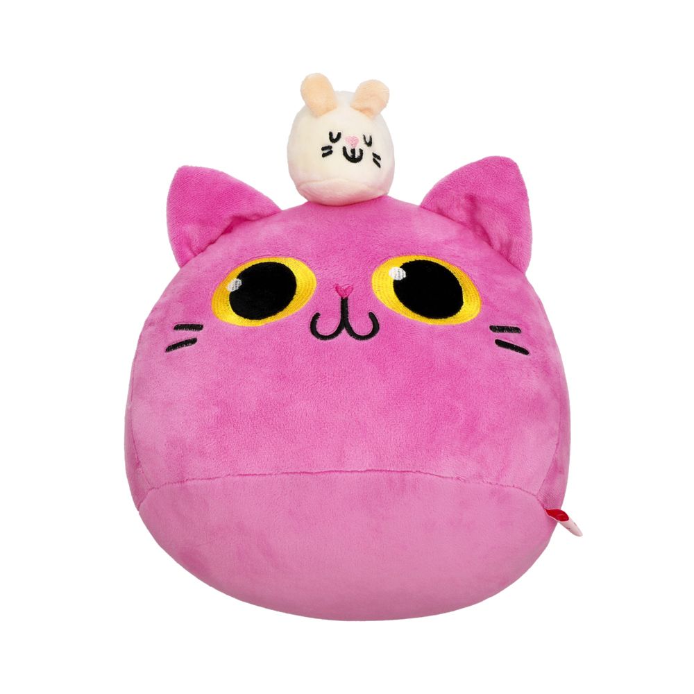 Cojín de animalito apretable con mascota. Tiene un tamaño de 27x30.5 cm.