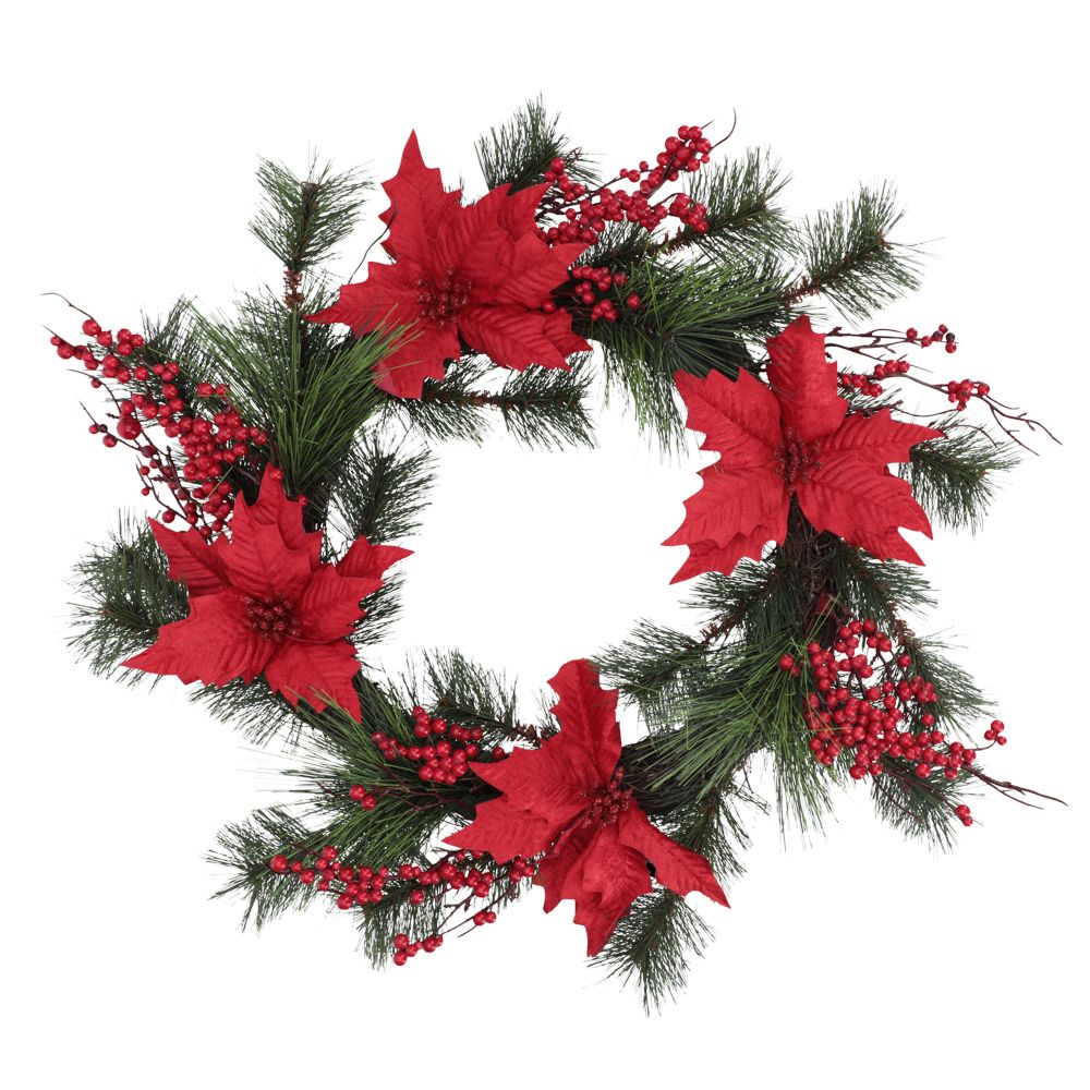 Corona navideña de flores y hojas. Ideal para decorar tus puertas y espacios esta navidad.