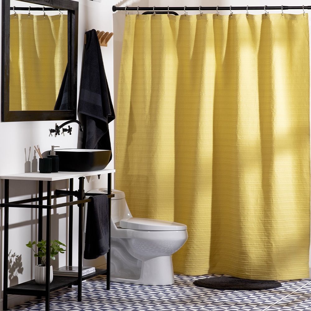 Cortina de Baño Amarilla de algodón con Tejido Waffle y Diseño de Hilado Teñido 180x190 cm - Casaideas