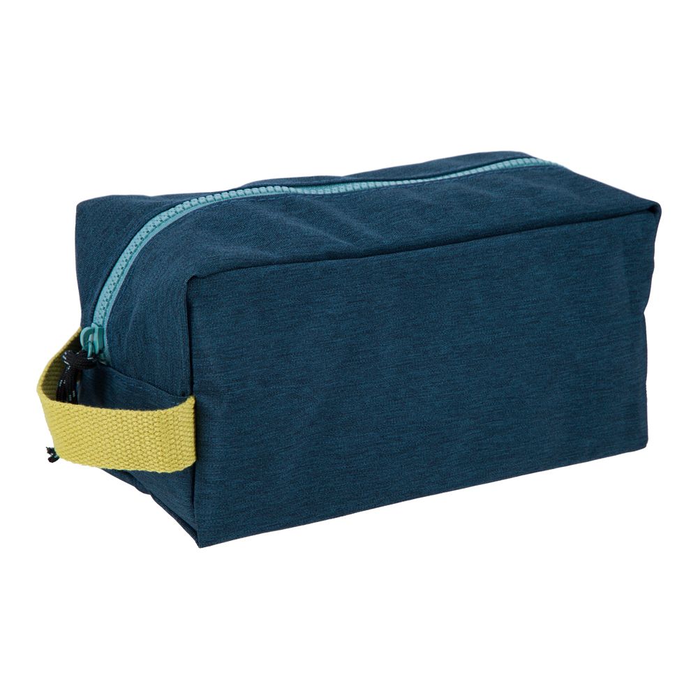 Cosmetiquera de poliéster modelo estuche. Ideal para llevar en tus viajes y almacenar tus accesorios de belleza y cuidado personal. Este producto tiene medidas de 22.5x11.5x11.5 cm.