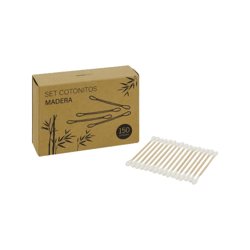 Caja de Cotonetes de madera de bambú biodegradables. Cuenta con 150 unidades.