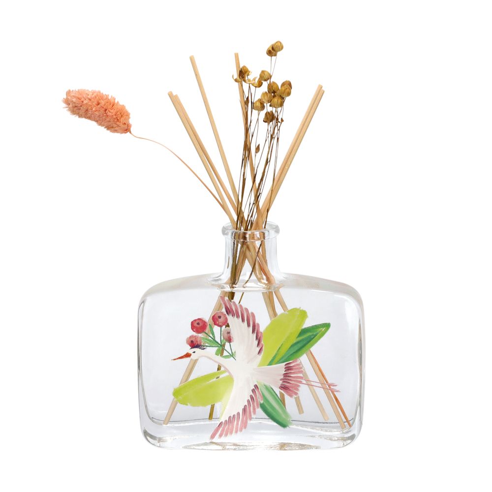 Botella de vidrio con varitas y flores. Aroma: Té verde. Contenido: 200 ml.