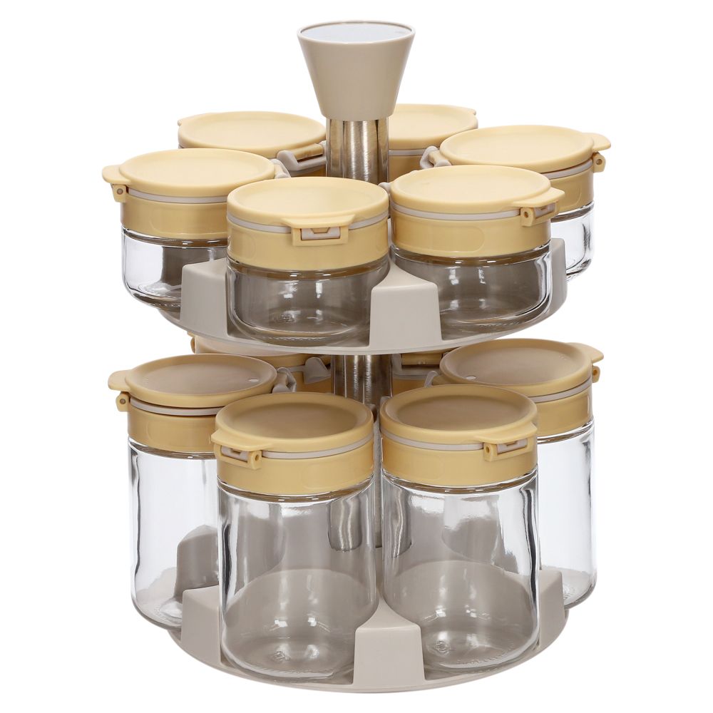 Especiero con rack redondo y dos niveles. Incluye 6 especieros de 85 ml y 6 especieros de 200 ml