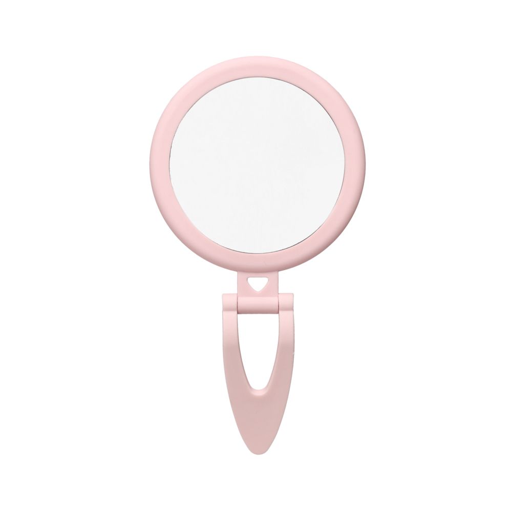 Espejo con aumento 2x y mango plegable para guardar en espacios pequeños. Se puede ocupar como espejo de mano o de mesa. Tiene un tamaño de 10x1x10.8 cm.