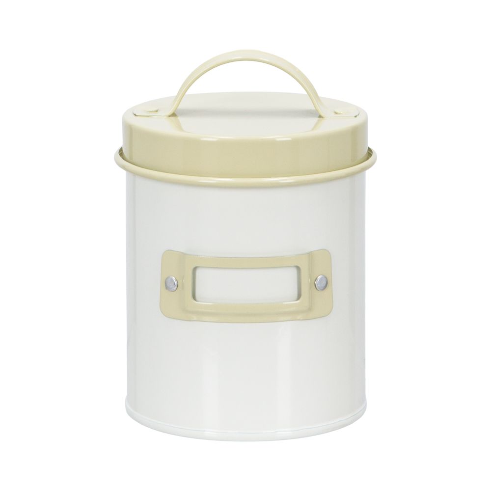 Frasco con tapa de acero galvanizado con terminado enlozado. Cuenta con espacio para escribir. Tiene una capacidad de 700 ml. Tiene un tamaño de 9x11 cm.