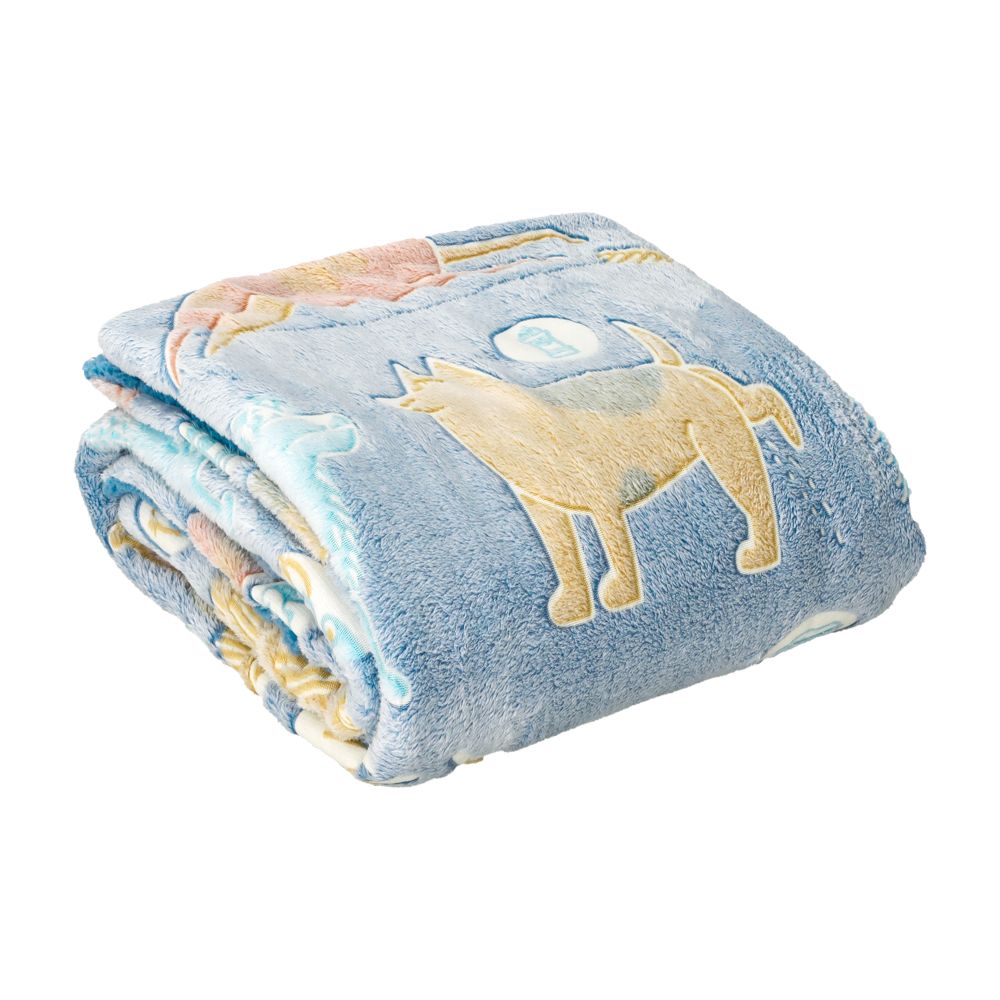 Frazada de coral estampado con divertido diseño que brilla en la oscuridad. Tiene un tamaño de 125x150 cm. Cuenta con certificación Oeko-Tex.