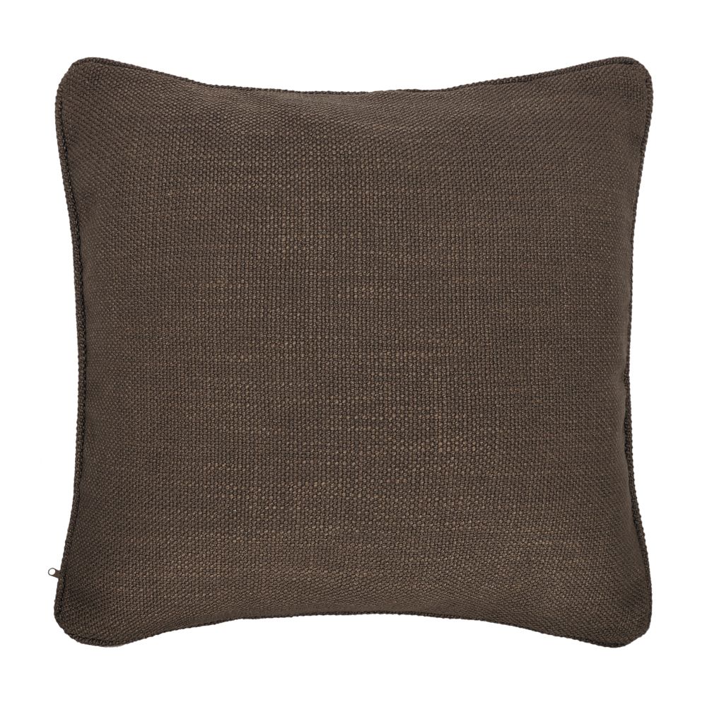Funda de cojín de poliéster con textura y borde. Tiene un tamaño de 45x45 cm.