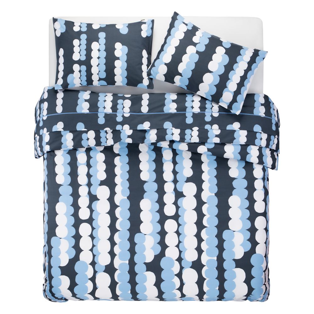 Funda de plumón/duvet con diseño estampado de 50% algodón-50% poliéster. Este producto cuenta con 180 hilos. Disponible en Individual (incluye una funda de almohadón 50x70 cm), Mat/Queen (incluye dos fundas de almohadón 50x70 cm) y King (incluye dos fundas de almohadón 50x70 cm). Lavar a máquina con agua tibia, 40ºC. No blanquear. No usar secadora. Planchar a temperatura media. No lavar en seco. Lavar colores oscuros por separado.