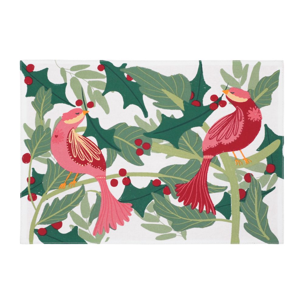 Individual para mesa de lino y algodón con diseño estampado navideño. Tiene un tamaño de 45x33 cm.
