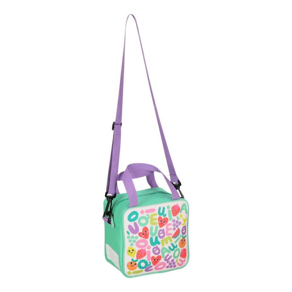 Lonchera con interior térmico y correa ajustable. incluye área para marcar. Ideal para preescolares. Tiene una capacidad de 3.5 litros, un tamaño de 19x11x19 cm y resiste hasta 5 kg.
