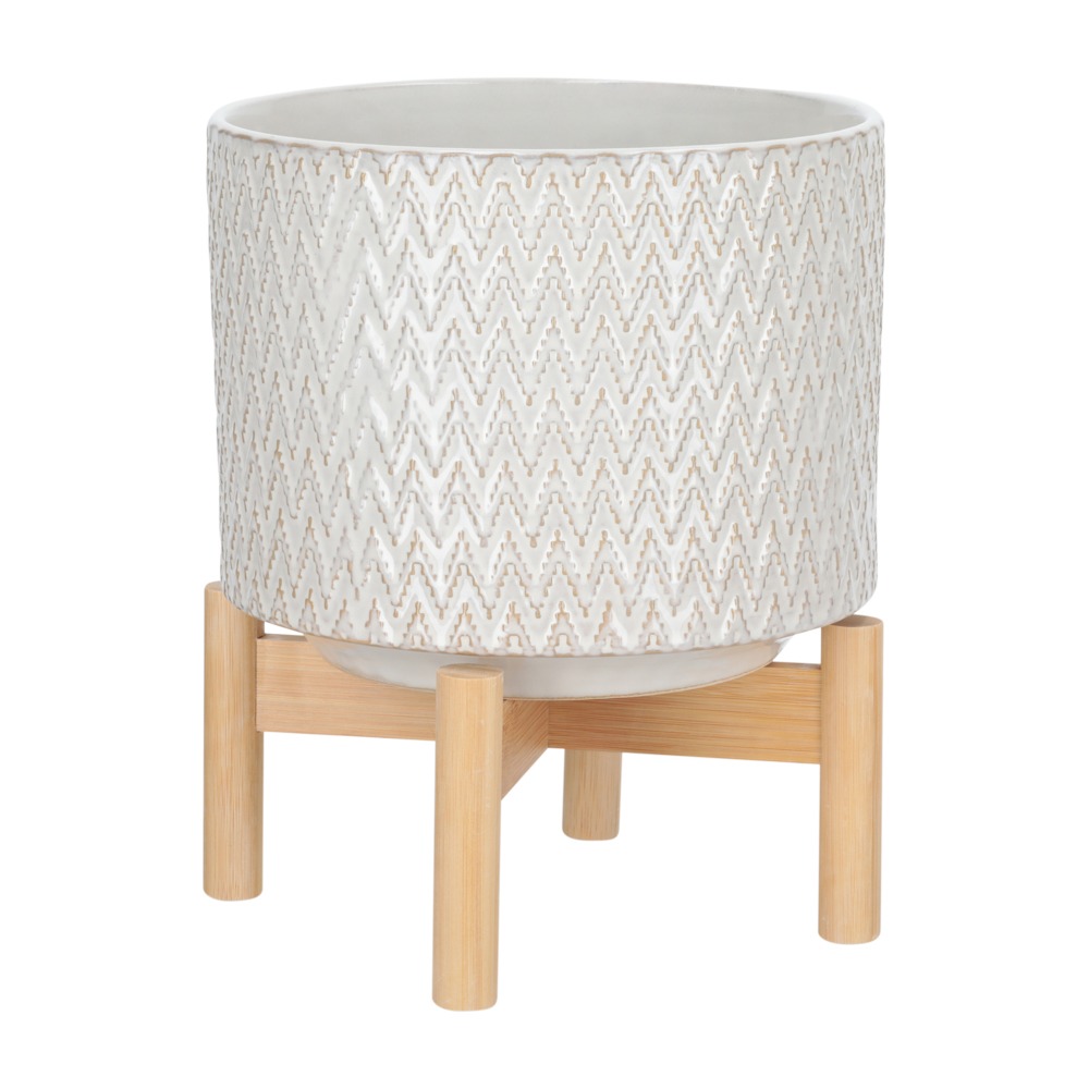 Maceta de cerámica con base de bambú 21x17 cm - Casaideas