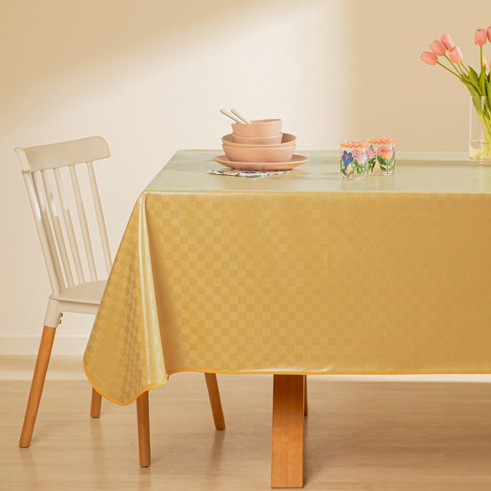 Mantel de tela jacquard poliéster con diseño de cuadros