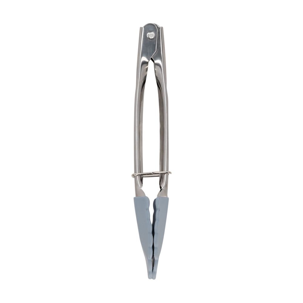 Mini pinzas de acero inoxidable con punta de silicona. Tiene un tamaño de 3.3x2.3x18 cm