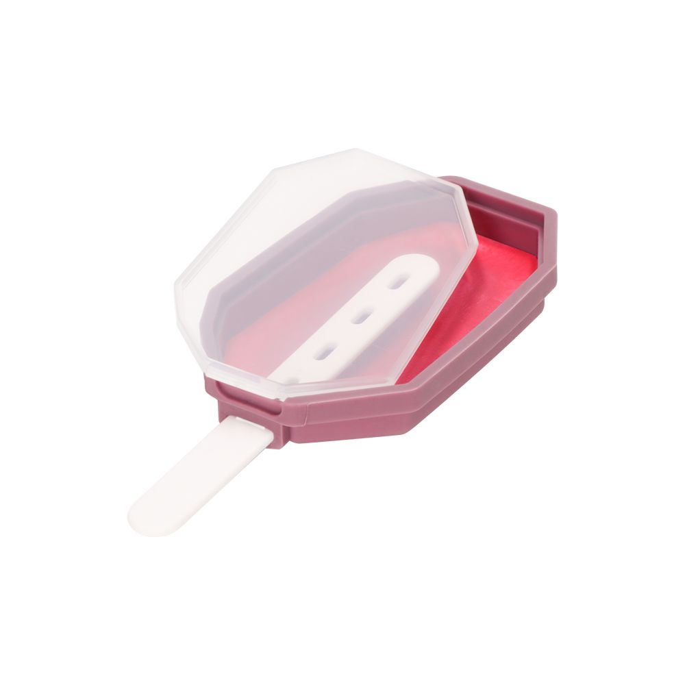 Molde de plástico para hacer paleta. Tiene un tamaño de 7.2x1.5x15.5 cm. Este producto resiste hasta -40º C.