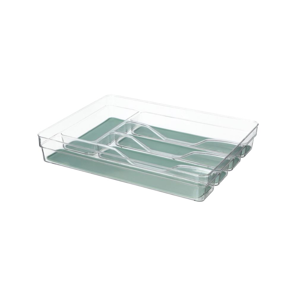 Organizador de plástico PET con antideslizante de silicona para cubiertos. Tiene un tamaño de 26.6x33.8x5.5 cm.