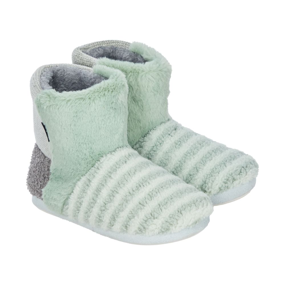 Pantufla tipo bota con tela peluda con suela de poliéster y lindo diseño. Disponible en 3 tallas. Cuenta con certificación Oeko-Tex.