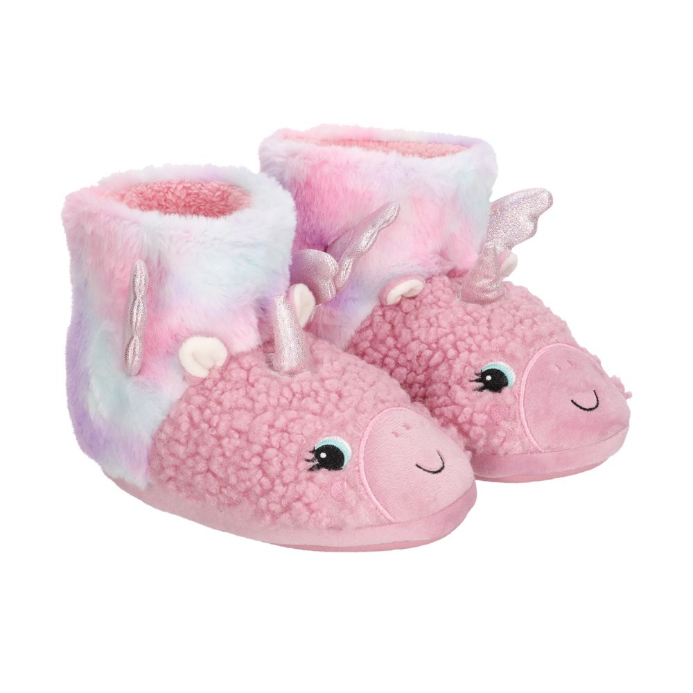 Cómodas pantuflas infantiles tipo bota de tela peluda con lindo diseño e interior suave. Suela resistente de mayor duración. Este producto está disponible en tres tallas, para que elijas la que mejor se acomode a tus necesidades.