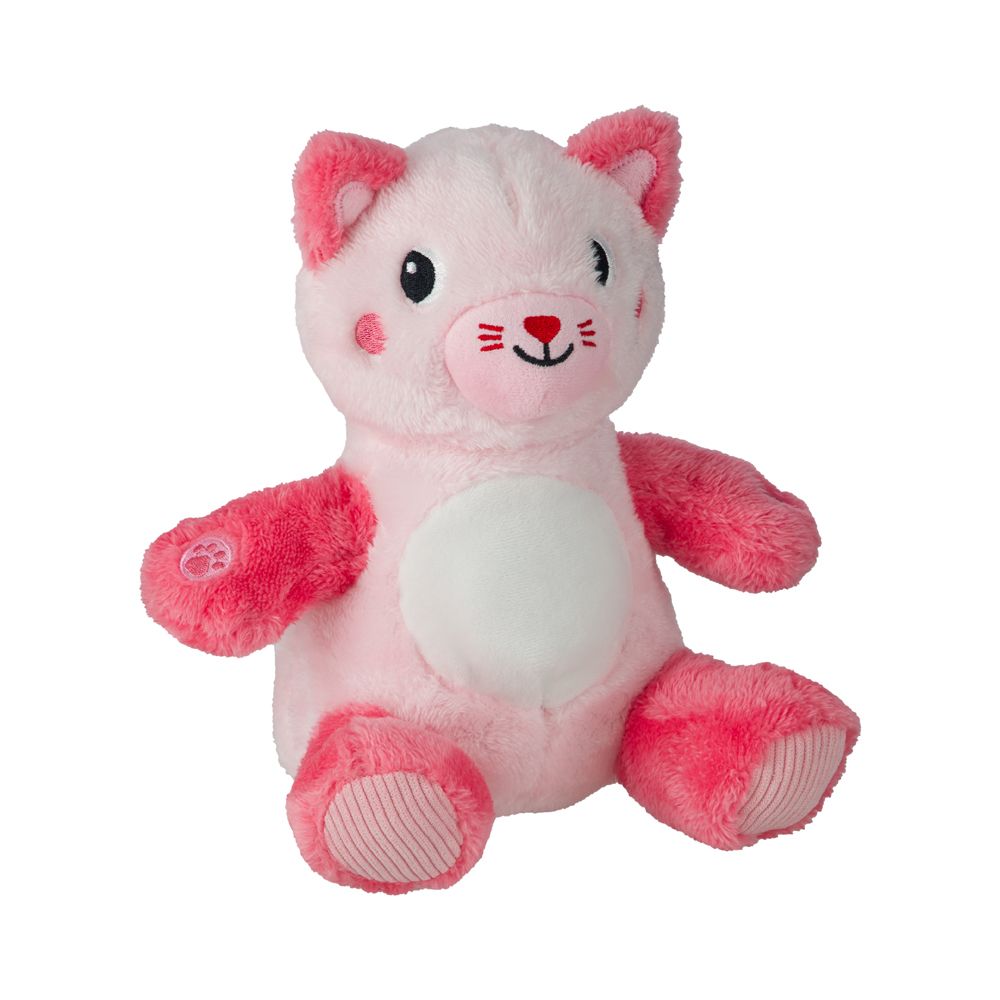 Peluche con luz y melodía musical. con forma de gatito. Ideal para decorar la habitación de tus pequeños. Tiene un tamaño de 18x20x26.5 cm. Ocupa foco LED (Incluida) y 3 pilas AAA (No incluidas) Ideal para niños mayores de 3 años.