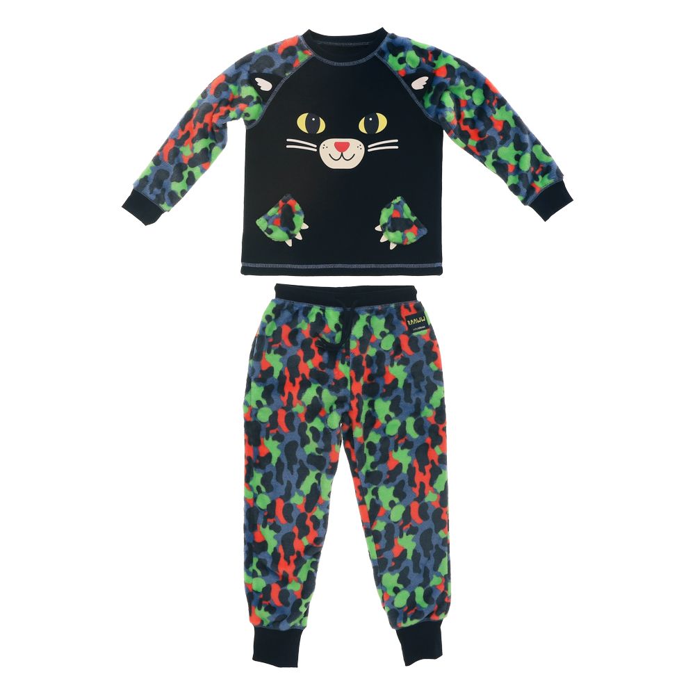 Pijama infantil de dos piezas. Cuenta con un Sudadera y pantalón hecho de tela franela y polar coral poliéster. Producto talla 6, ideal para pequeños de 5 a 6 años. Lavado a máquina con agua fría 30º C. Usar blanqueador. No planchar. No lavar en seco. Lavar solo. No mezclar colores.
