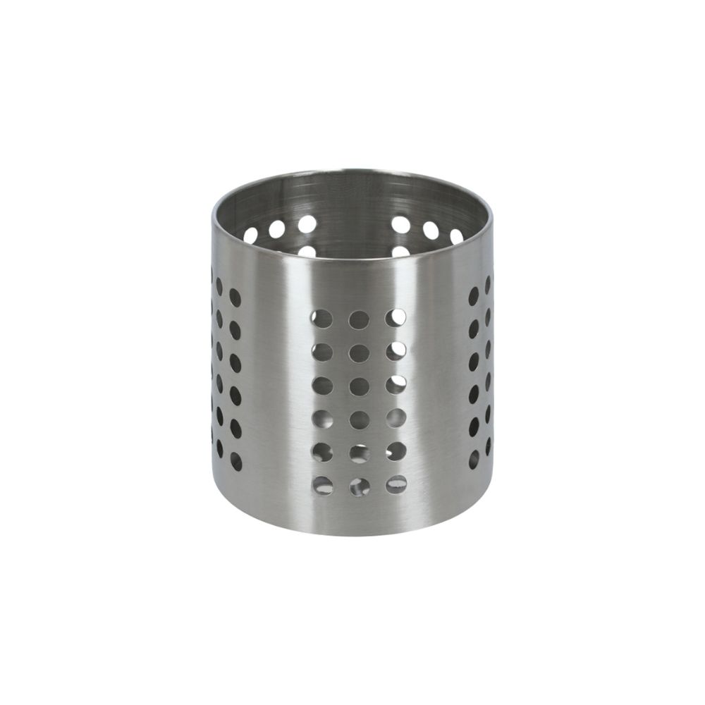 Porta utensilios circular de metal. No ocupar como escurre cubiertos. Cuenta con un diámetro de 12x13 cm. No apto para lavavajillas, no usar como escurre cubiertos.