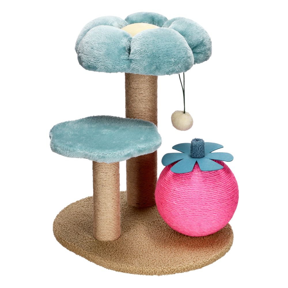 Rascador tipo torre para que tu gato. Podrá limarse las uñas, estirarse, desestresarse, jugar y ocuparse en tu ausencia. Ningún juguete es indestructible y requiere supervisión mientras juega.