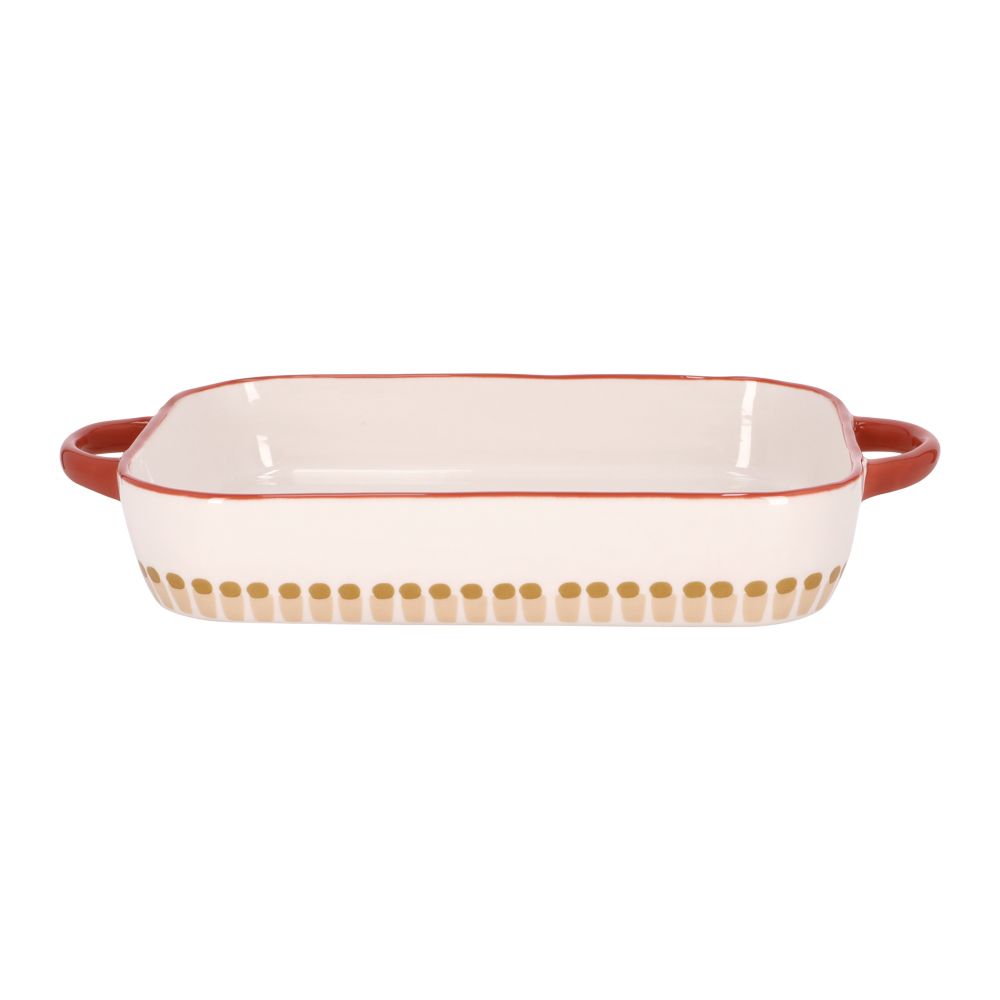Fuente para horno de cerámica gres tamaño grande. Tiene un tamaño de 34.3x23x6.5 cm.