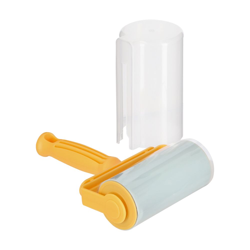 Removedor de pelusas de goma reutilizable. Cuenta con una goma que se puede lavar y volver a utilizar. Tiene un tamaño de 11x6.5x18 cm.