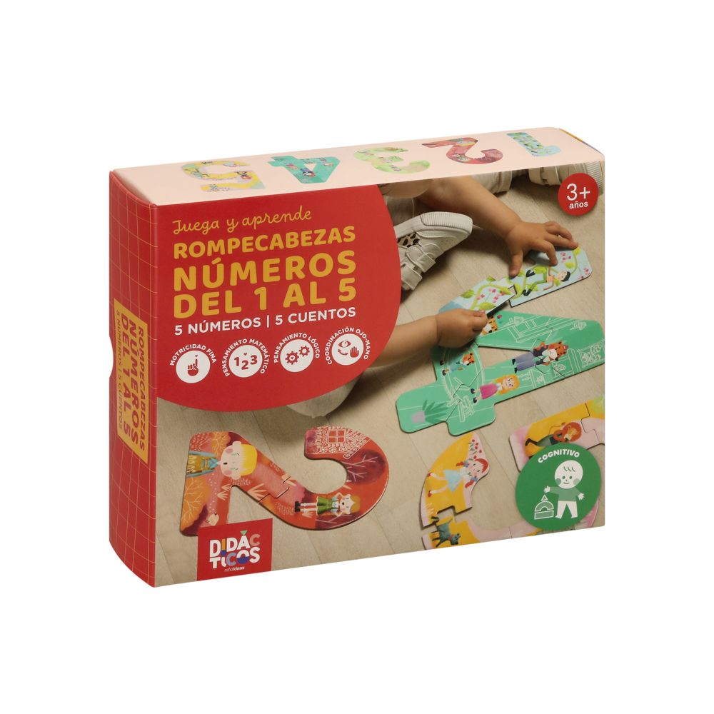 Rompecabezas con números didácticos del 1 al 5. Ideal para mayores de 2 años. Incluye 5 números y 5 cuentos.