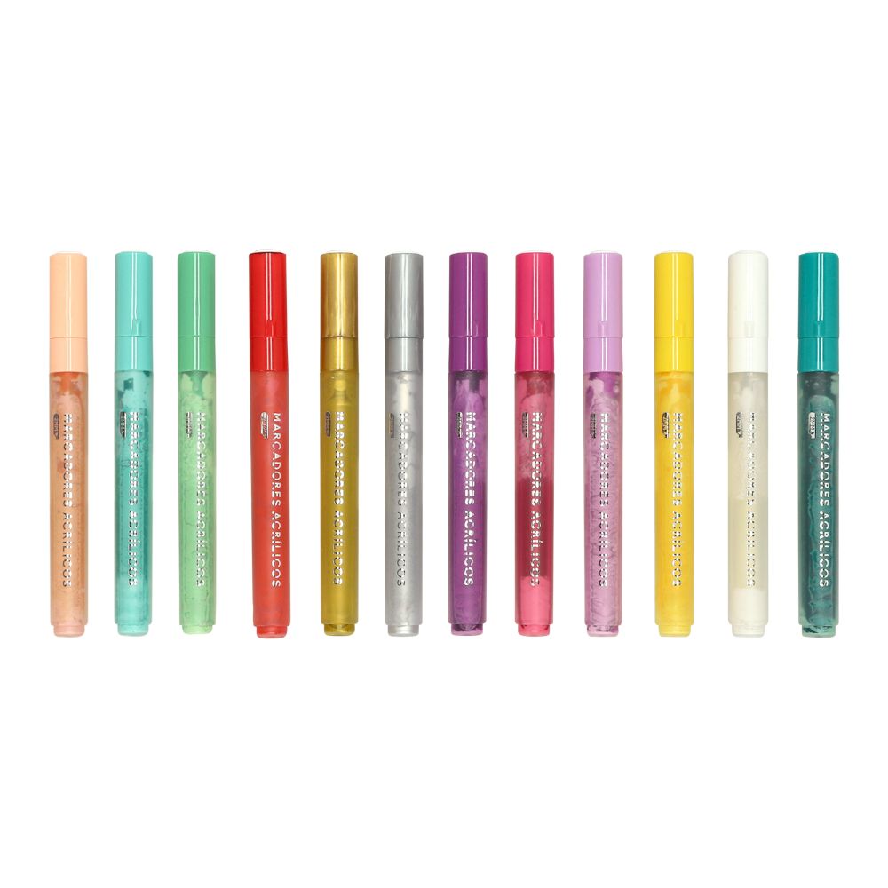 Set 12 de acrílico de diferentes colores. Son ideales para utilizar en dibujo, ilustración y lettering.