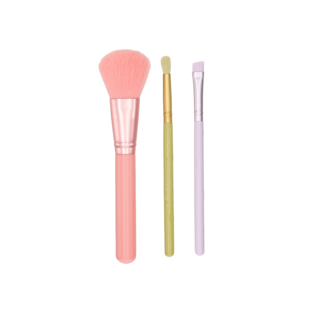 Set de 3 brochas para maquillarse. Incluye: 1 brocha gruesa. 1 brocha delgada y 1 brocha recortada. Lavado con agua y jabón suave.
