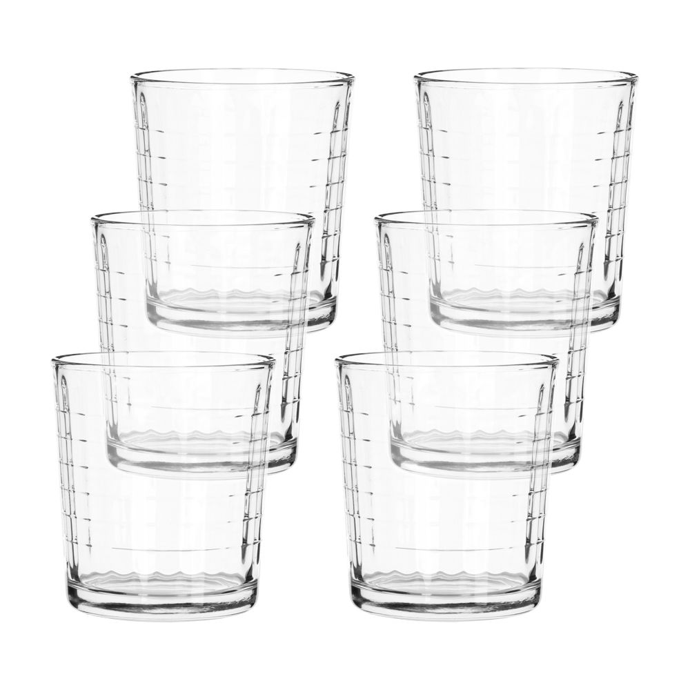 Set 6 vasos de vidrio con diseño texturado en relieve. Tiene una capacidad de 265 ml