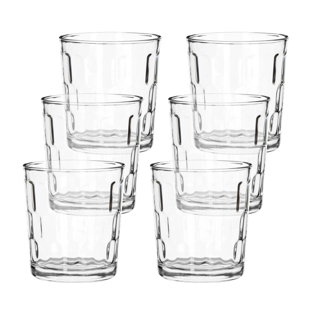 Set 6 vasos de vidrio con diseño texturado en relieve. Tiene una capacidad de 265 ml