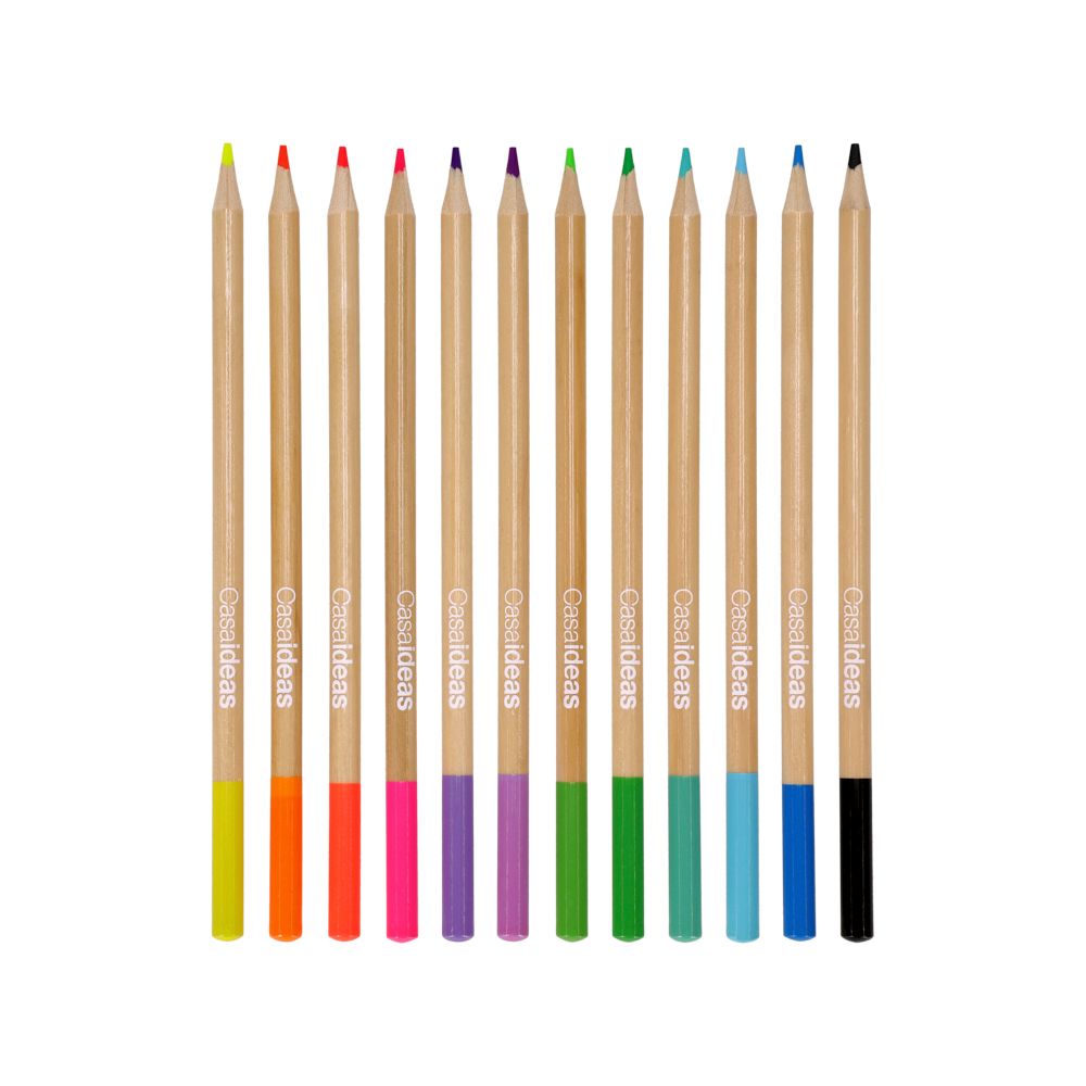 Set de 12 lápices de madera con diferentes colores neón. Incluye una caja metálica para guardar y transportar. Ideal para mayores de 3 años.