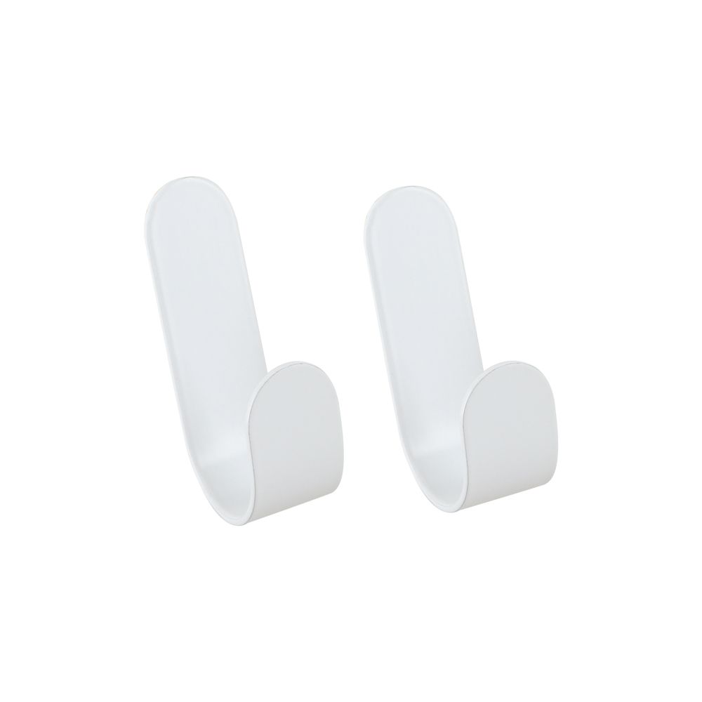 Set de 2 perchas de metal con adhesivo. Incluye instrucciones de instalación. Cada uno soporta 1 kg.