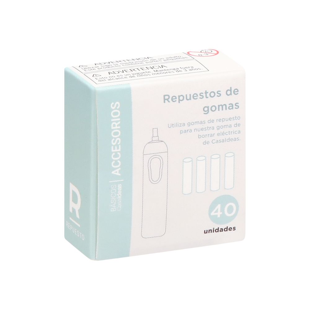 Set de gomas de repuesto para nuestra goma a pilas. Incluye 40 unidades. Tienen un tamaño de .4x1.5 cm