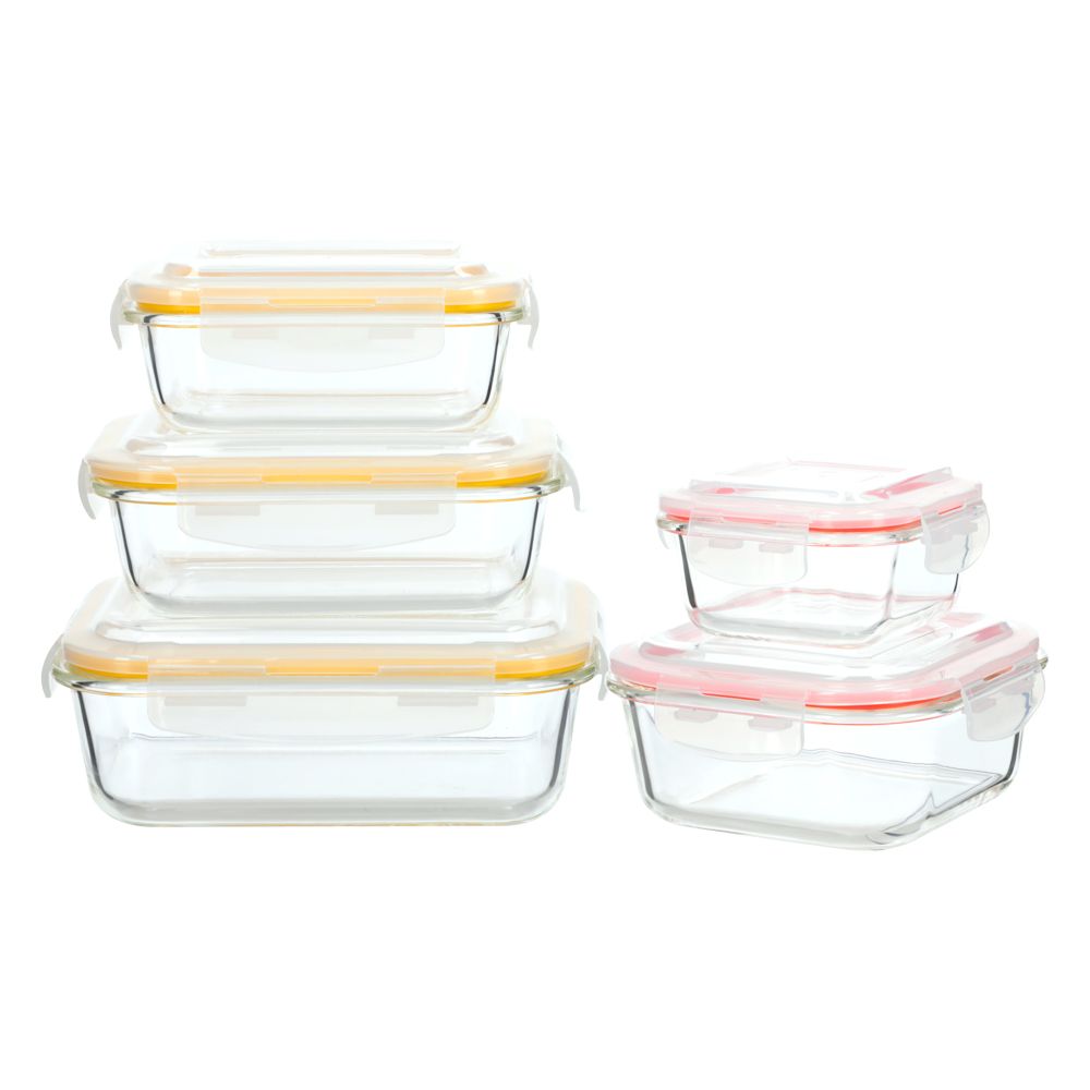 Set de 5 contendores de alimentos de plástico con cierre hermetico con formas rectangulares y cuadradas
