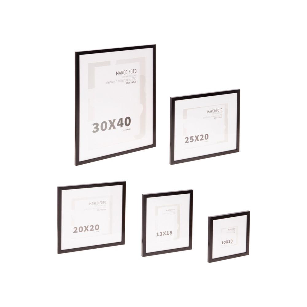 Set de 5 Portarretratos de diferentes tamaños. Con protector frontal de vidrio. Ideal para foto de 10x10 - 13x18 - 20x20 - 20x25 - 30x40. Cuenta con paspartú. Limpiar con un paño húmedo.