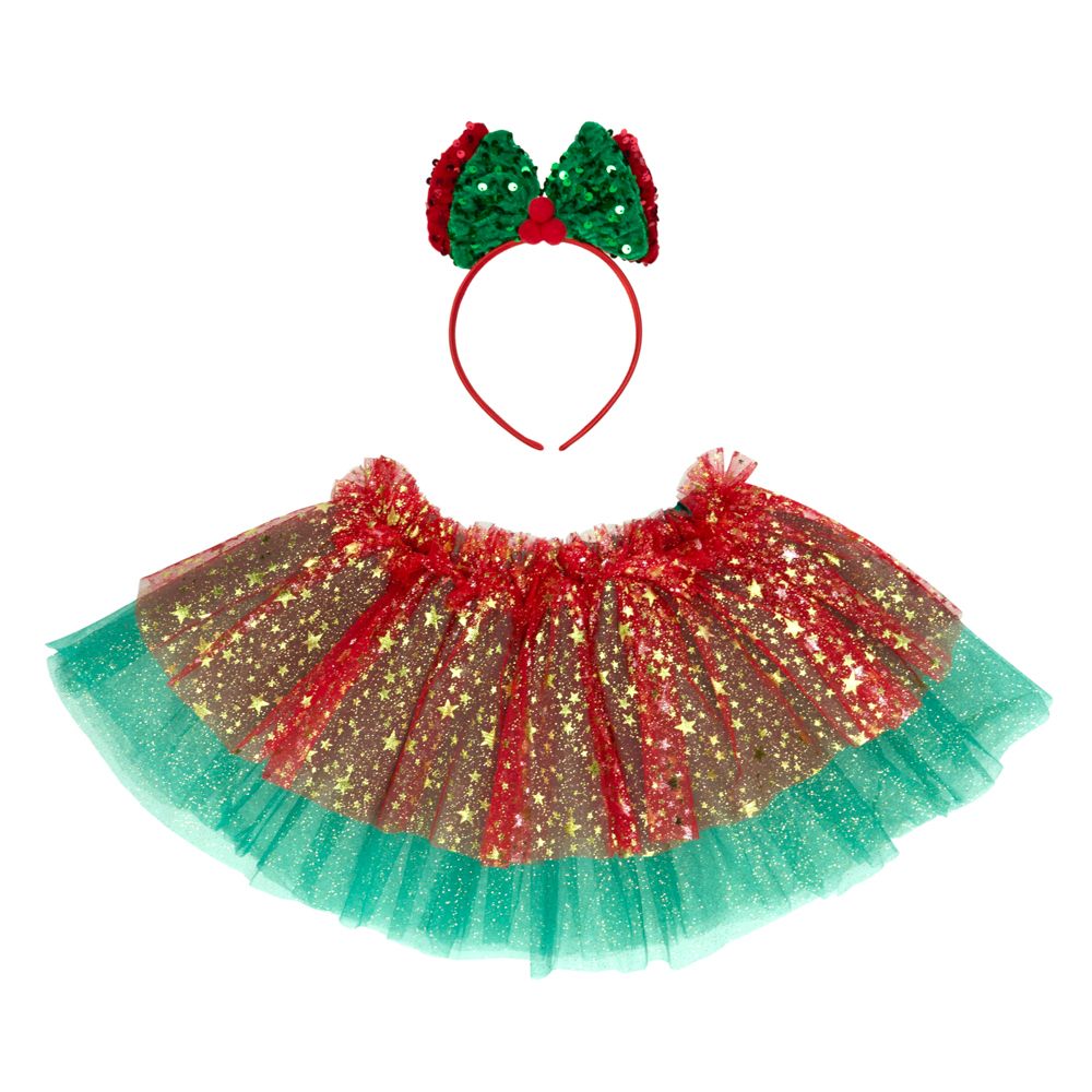 Set disfraz infantil con temática navideña. Incluye falda y Diadema. Ideal para mayores de 3 años.