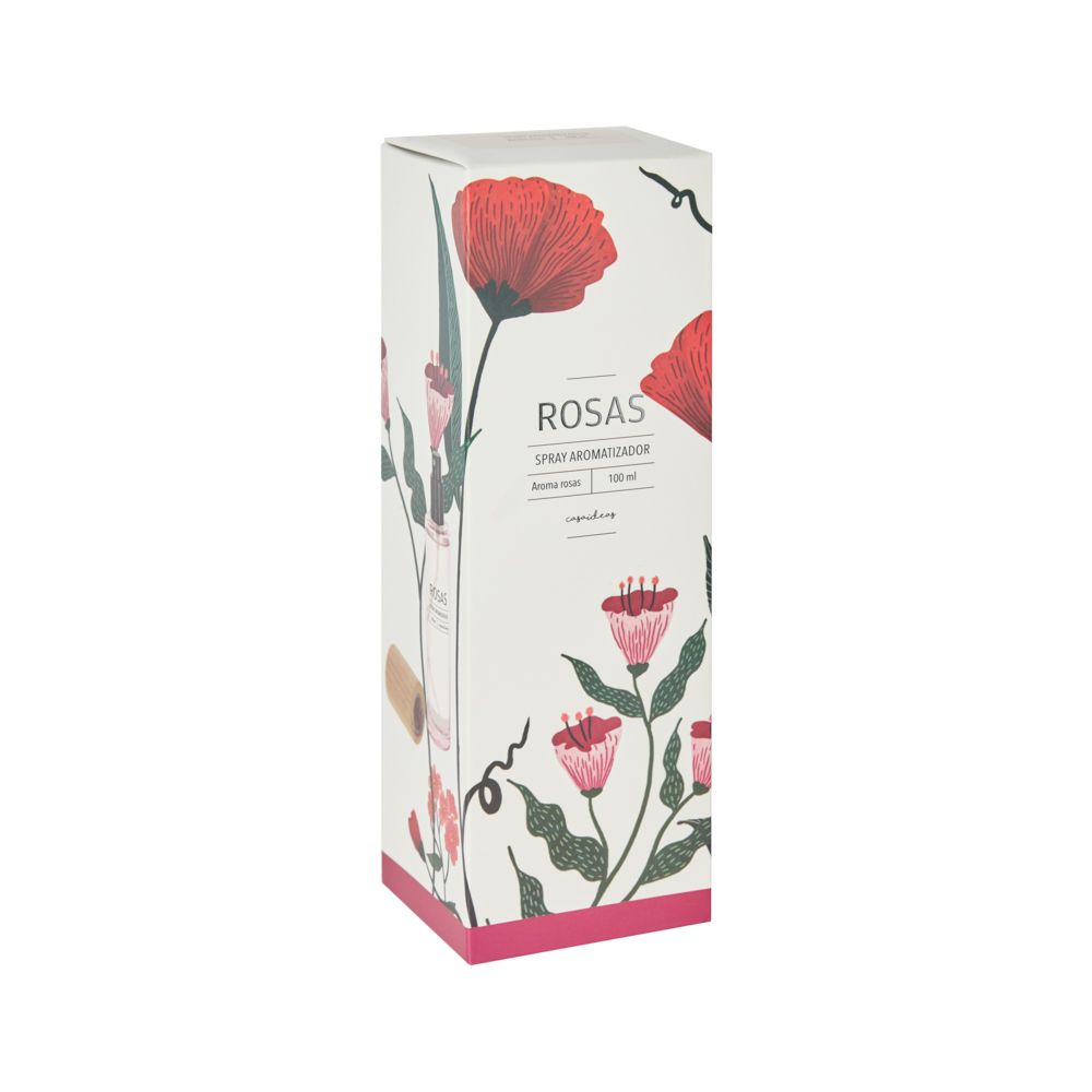 Spray aromático que neutraliza olores y refresca el ambiente con olor a rosas. Tiene un contenido de 100 ml.