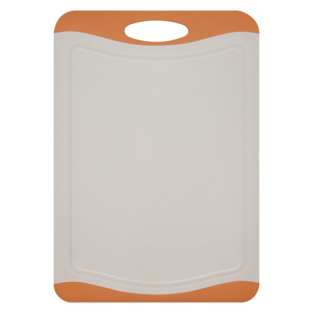Tabla plástica para cortar alimentos. Tiene un tamaño de 41.8x28.7 cm.