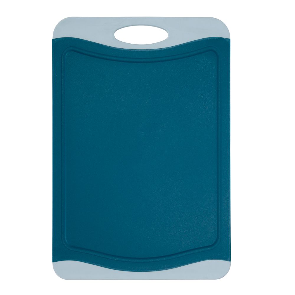 Tabla plástica mediana con superficie antideslizante para cortar o picar alimentos. Producto libre de BPA. Tiene un tamaño de 20x0.9x29 cm.