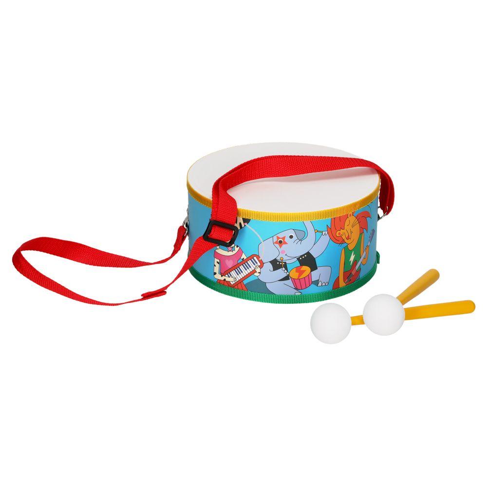 Tambor infantil de madera que incluye dos baquetas para poder tocar y correa para colgar en el cuello. Tiene un diámetro de 20x10 cm. Ideal para mayores de 3 años.